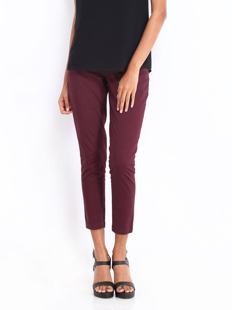 Arrow Woman Burgundy Slim Fit Cropped Trousers
