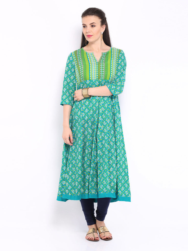 Anouk Women Green Printed Anarkali Kurta
