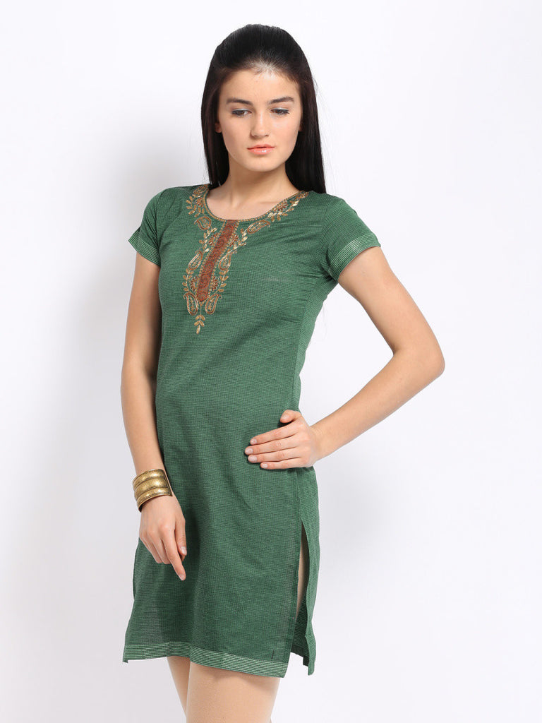 Anouk Women Green Checked Kurta