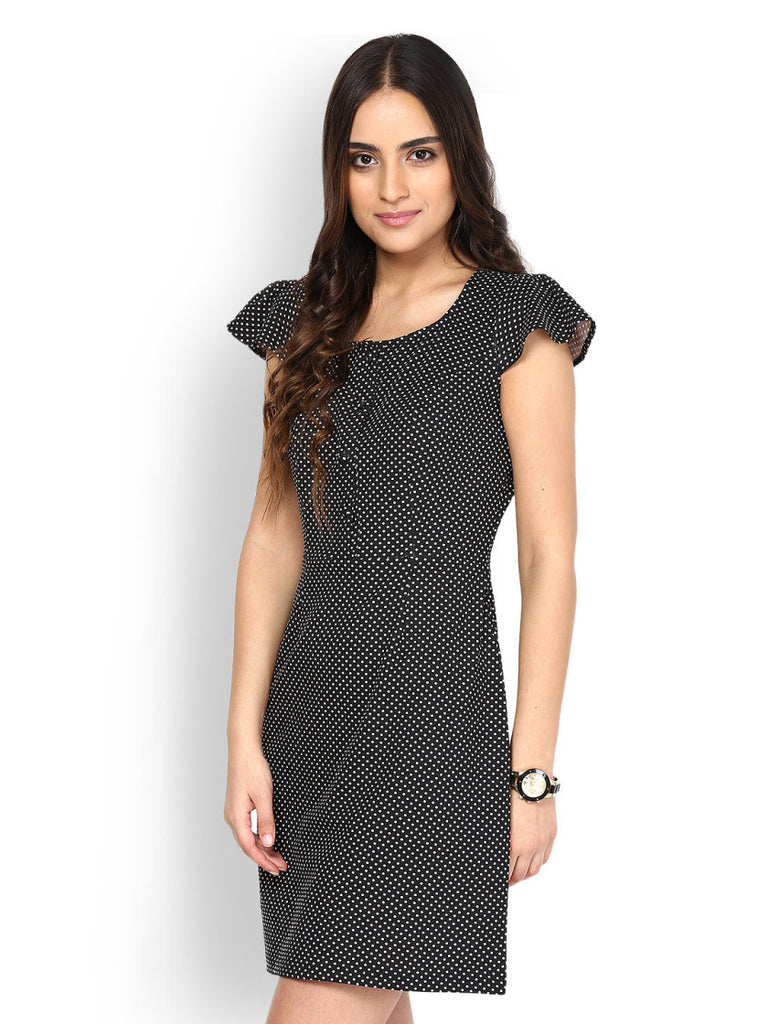 Besiva Black & White Polka Dot Printed A-line Dress