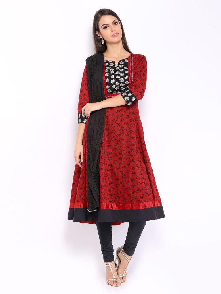 Anouk Rustic Women Red & Black Printed Anarkali Churidar Kurta wit