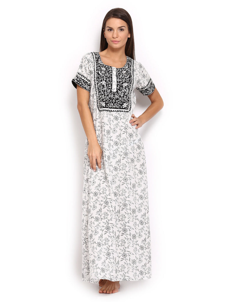Aneri Off-White & Black Printed Maxi Nightdress G87