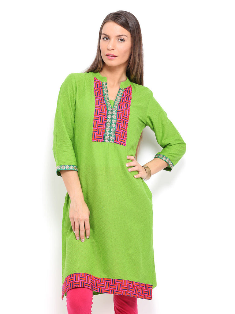 Anouk Women Green Cotton Kurta