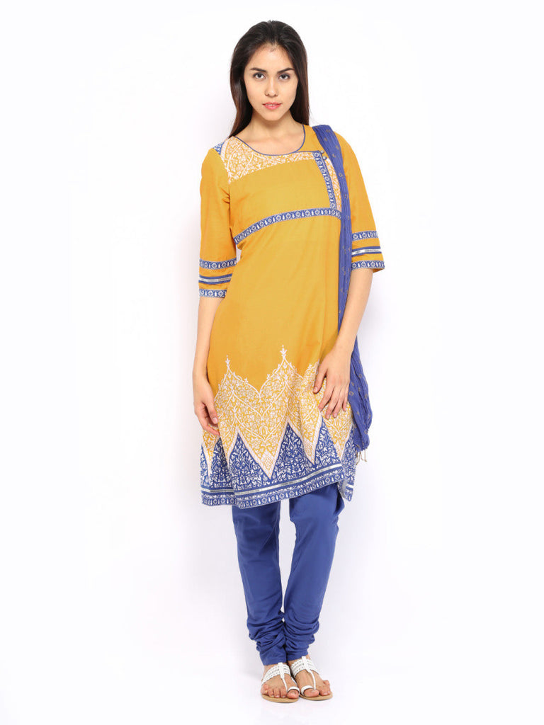 Aurelia Women Mustard Yellow & Blue Churidar Kurta with Dupatta