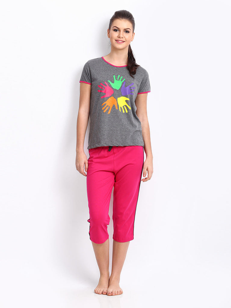 July Nightwear Women Dark Grey Melange & Pink Lounge Set A53
